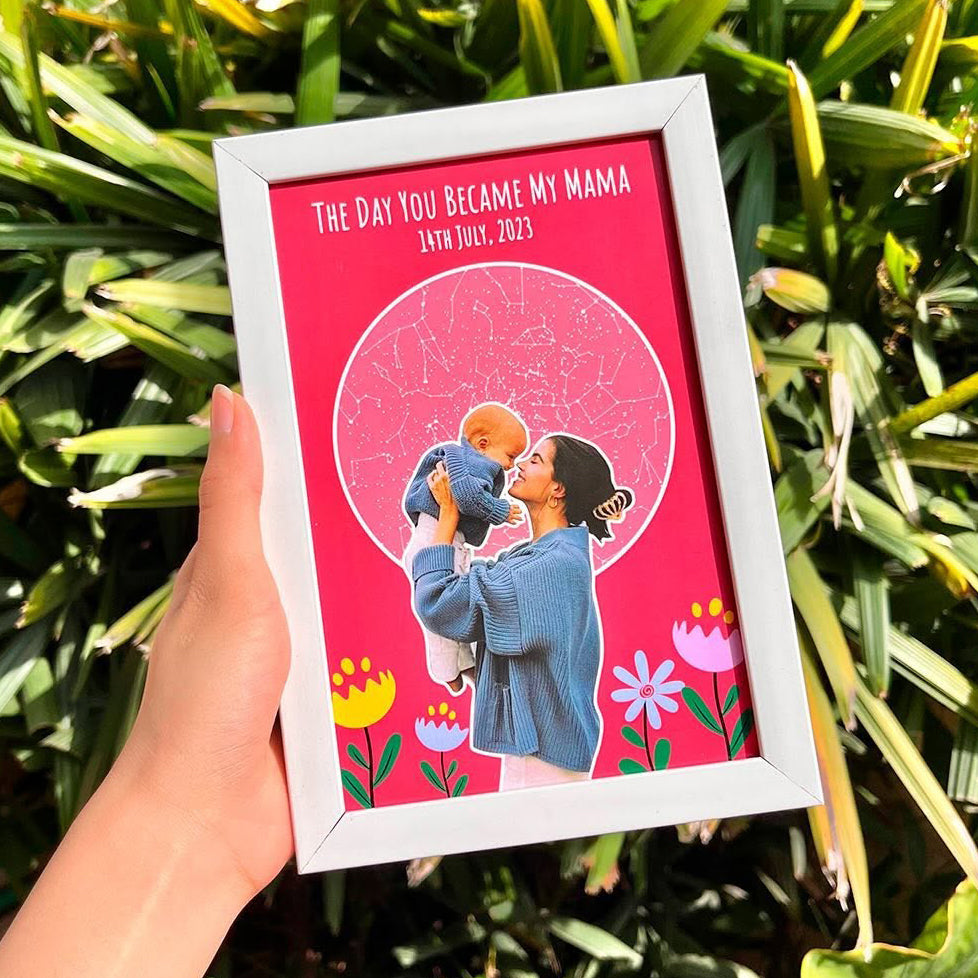 A custom framed star map for the day you became a mom.