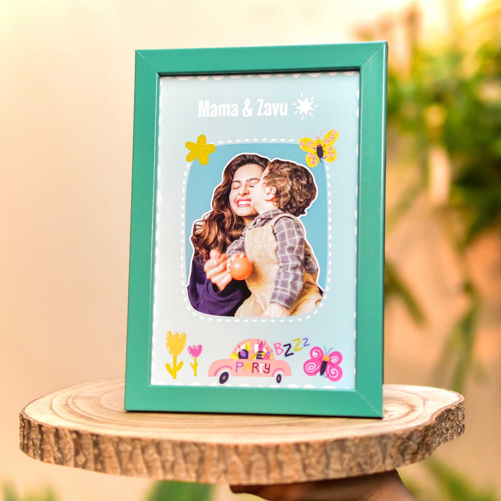 An adorable colored frame featuring a cherished picture of Mama and Baby.